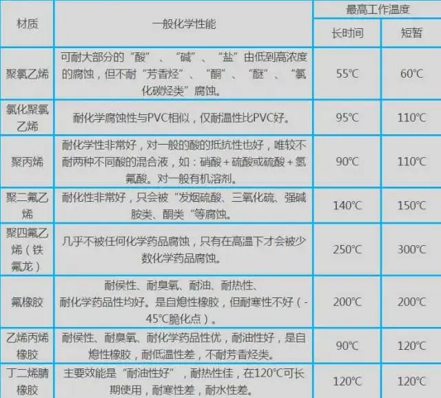 *常用非金屬材料適用工況